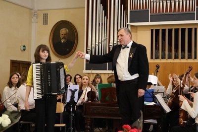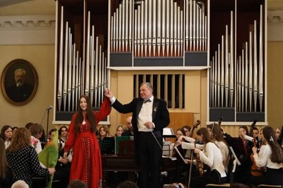 Головні бенефіціанти дійства - оркестр народних інструментів предметно- циклової комісії " Народні, оркестрові, духові та ударні інструменти " та безпосередній керівник і диригент , викладач- методист, відмінник освіти України Сергій Григорович Омельченко.