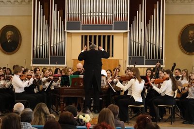 Заспівом концерту "Гармонія поколінь" стали істинно гармонійні, всесвітньовідомі музичні шедеври : " Інтермецо" Йогана Штрауса з оперети " Тисяча та одна ніч" у виконанні оркестру; " Арія цариці ночі" з опери Вольфганга Амадея Моцарта "Чарівна флейта" у виконанні студентки 3 курсу Вероніки Степаненко ( викладачка - Марія Буймістер); " Ave Maria" Астора П'яццоли у виконанні першокурсниці Марини Ромащук ( клас викладача, Народного артиста України Олеся Яська).