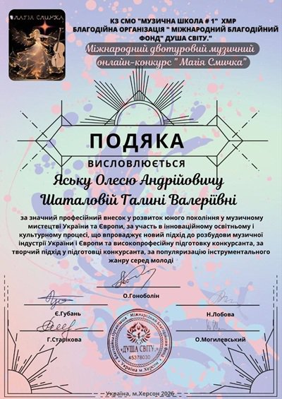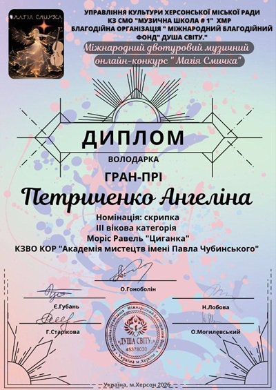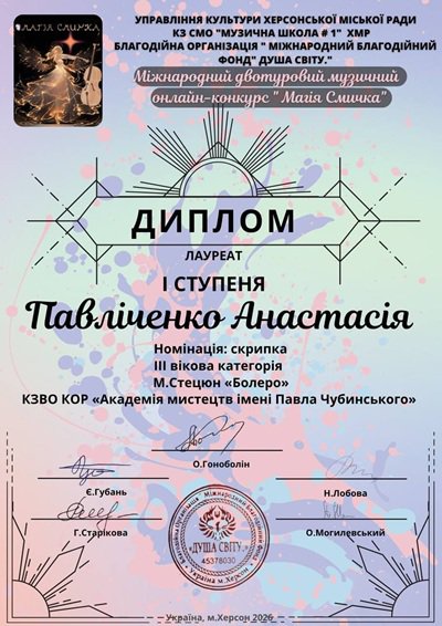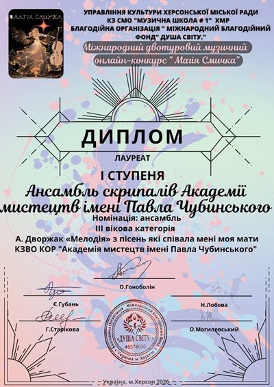 Міжнародному музичному конкурсі «Магія Смичка» (м. Херсон, 2026).