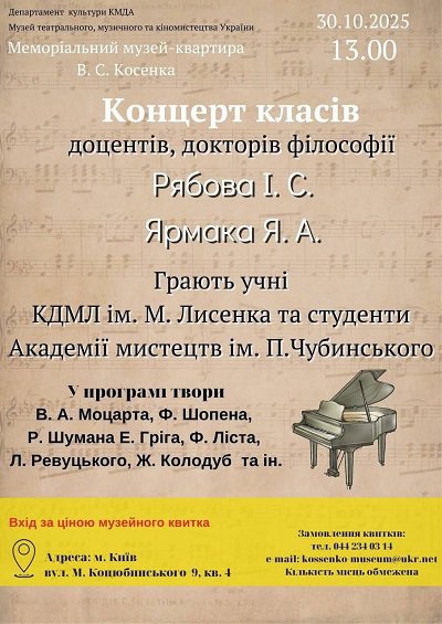 Днями у квартирі-музеї композитора Віктора Косенка відбувся яскравий концерт студентів класів докторів філософії, доцентів кафедри «Інструментальне виконавство (за видами)» — Ігоря Сергійовича Рябова та Ярослава Анатолійовича Ярмака.