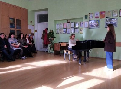 Віповідно до плану засідання, відкритий урок з ученицею 4 БМС курсу Дариною Гончаренко на тему "Сучасні підходи до викладання академічного співу" провела Заслужена артистка України, доцентка кафедри "Мистецтво співу" Валентина Володимирівна Матюшенко.
