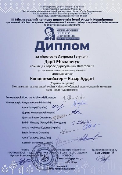 диригентів імені Андрія Кушніренка в номінації «Хорове диригування».