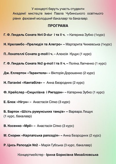 скрипалів Академії мистецтв імені Павла Чубинського подарував всім присутнім
