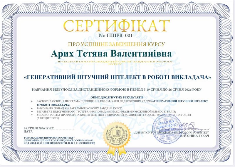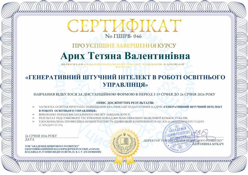 Арих Тетяна Валентинівна