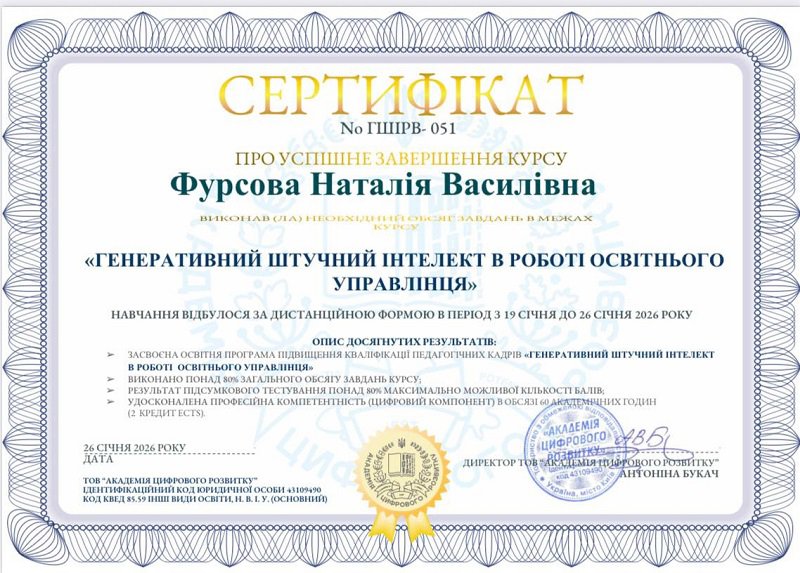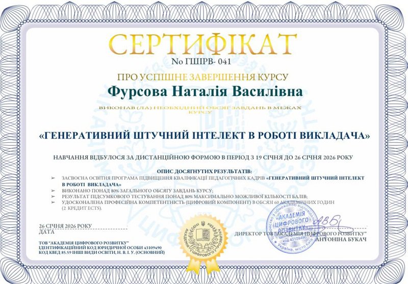 - Фурсова Наталія Василівна