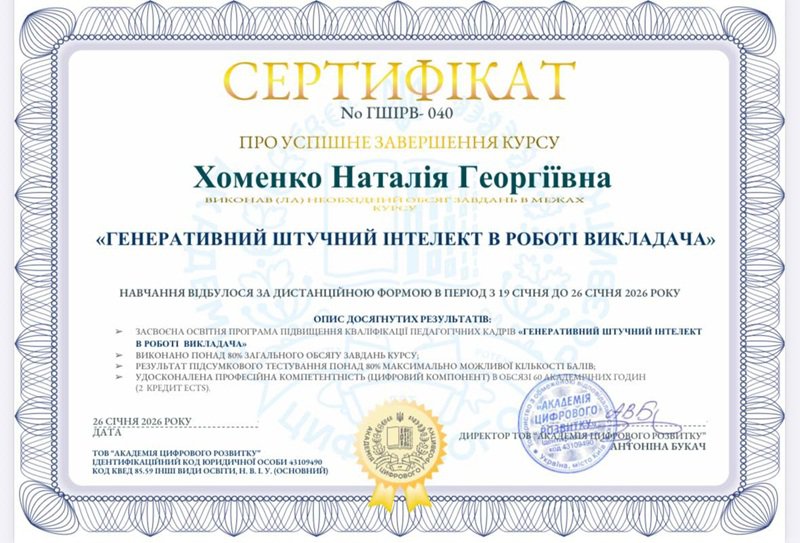 Хоменко Наталія Георгіївна