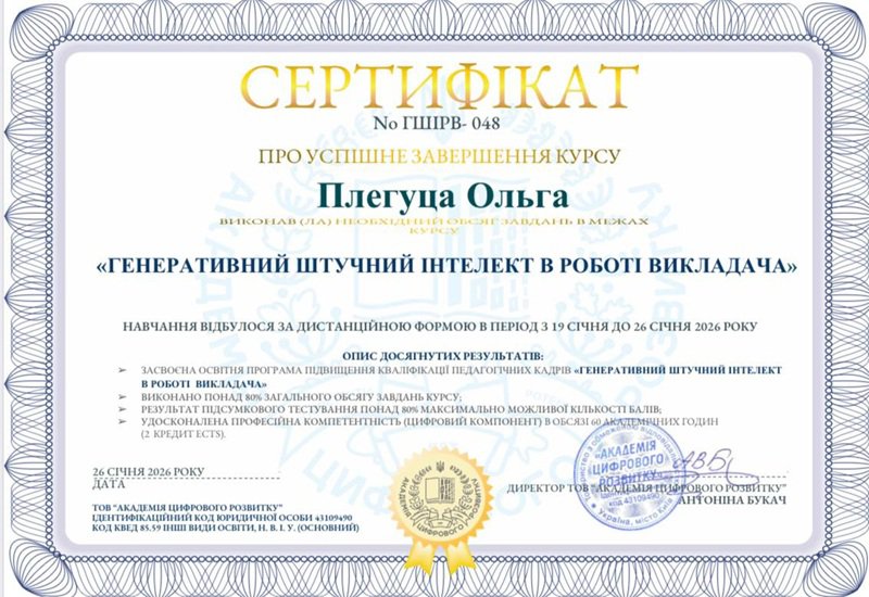 Плегуца Ольга Олександрівна