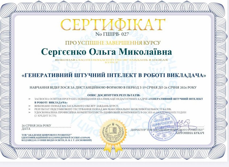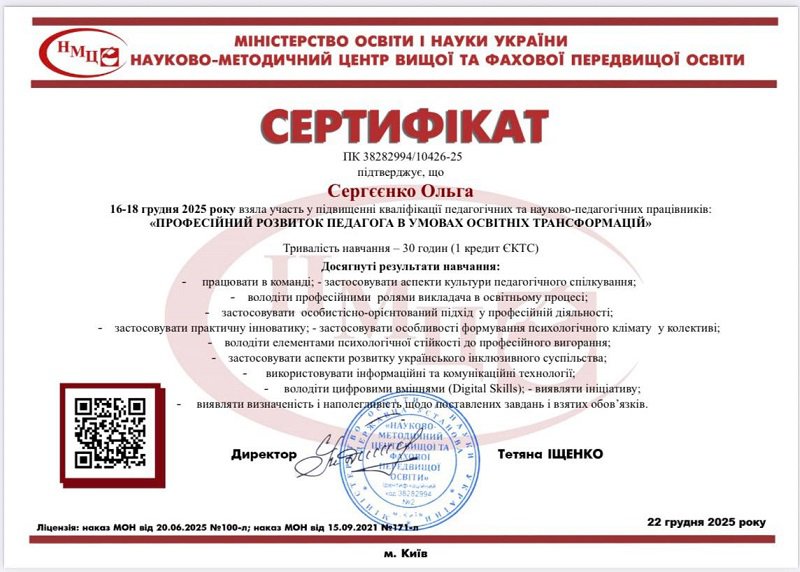 Сергєєнко Ольга Миколаївна