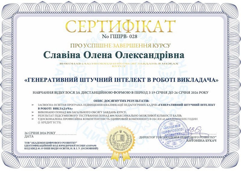 Славіна Олена Олександрівна