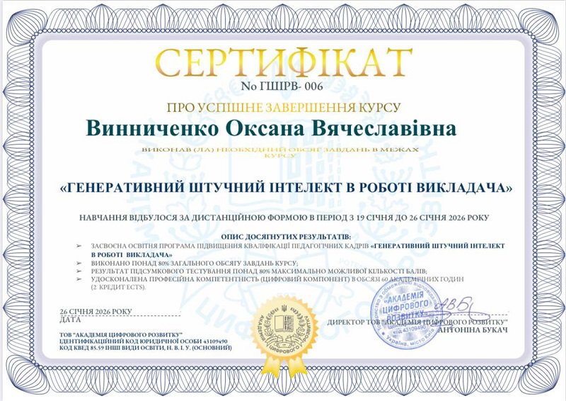Винниченко Оксана В'ячеславівна