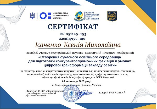 Ісаченко Ксенія Миколаївна
