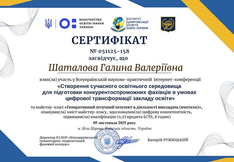 - Шаталова Галина Валеріївна