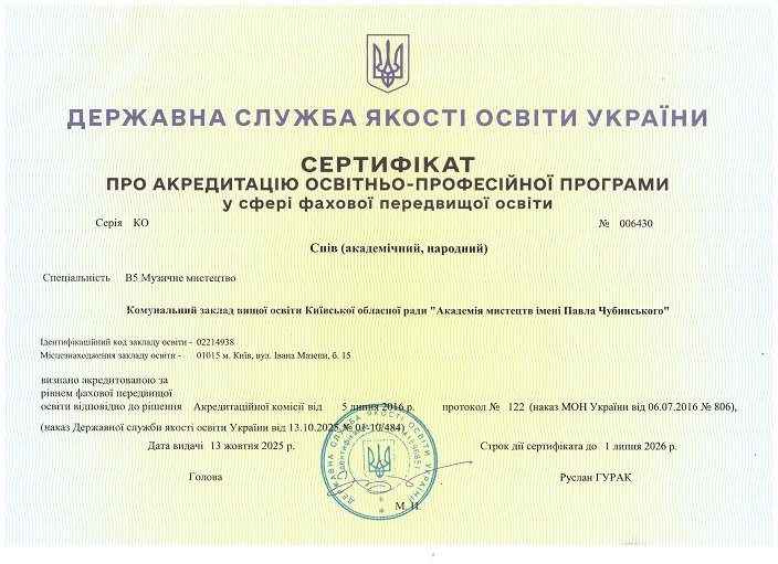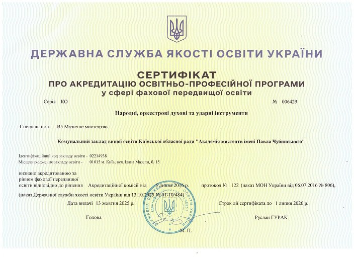 ➤ Сертифікати про акредитацію освітньо-професійних програм за освітньо-кваліфікаційним рівнем "Молодший спеціаліст"