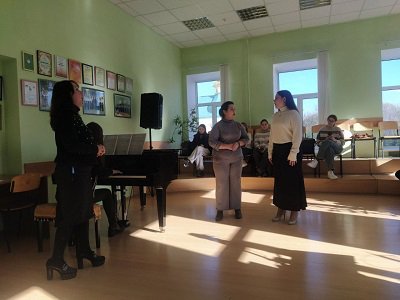 Віповідно до плану засідання, відкритий урок з ученицею 4 БМС курсу Дариною Гончаренко на тему "Сучасні підходи до викладання академічного співу" провела Заслужена артистка України, доцентка кафедри "Мистецтво співу" Валентина Володимирівна Матюшенко.