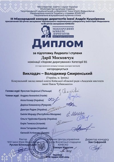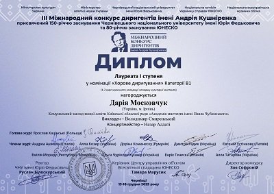 диригентів імені Андрія Кушніренка в номінації «Хорове диригування».