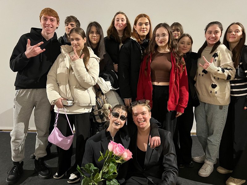 Після перегляду студенти-першокурсники (викладачка - Т.І. Полякова) як майбутні актори, режисери та організатори фотографувалися на згадку з учасниками постановки.