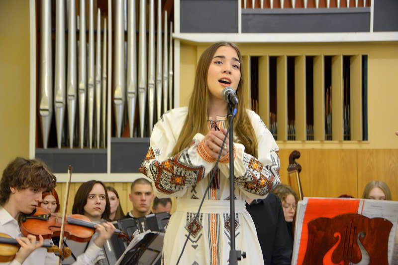 Першими нотами концерту стали виконана оркестром народних інструментів увертюра до опери Джузеппе Россіні «Сорока-крадійка» та партія Севільяни з комічної опери Жюля Массне «Дон Сезар де Базан» у виконанні студентки другого курсу бакалаврату Вероніки Кияшко (клас викладачки Марії Валеріївни Буймістер).