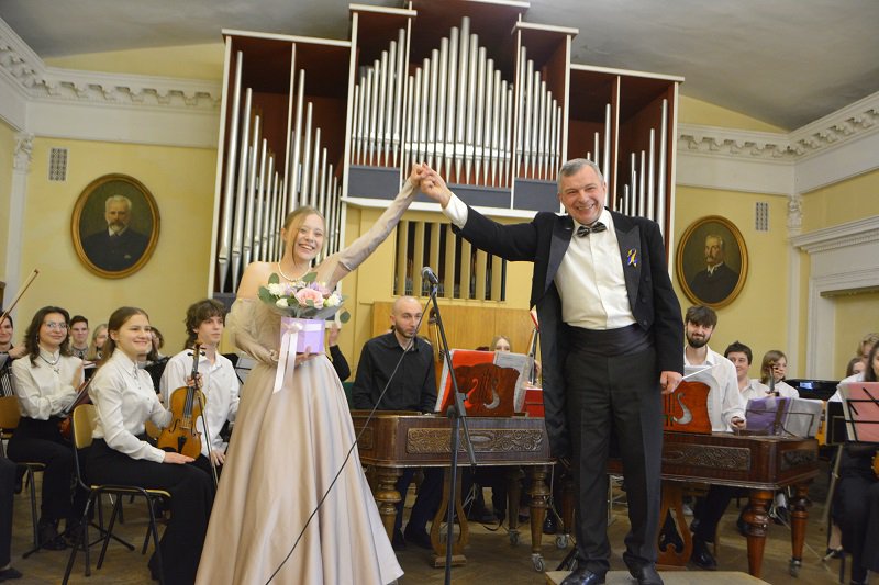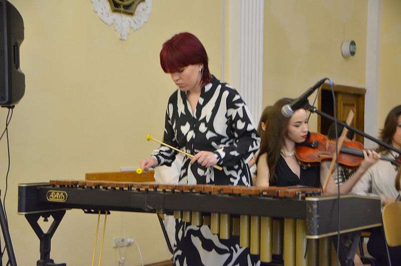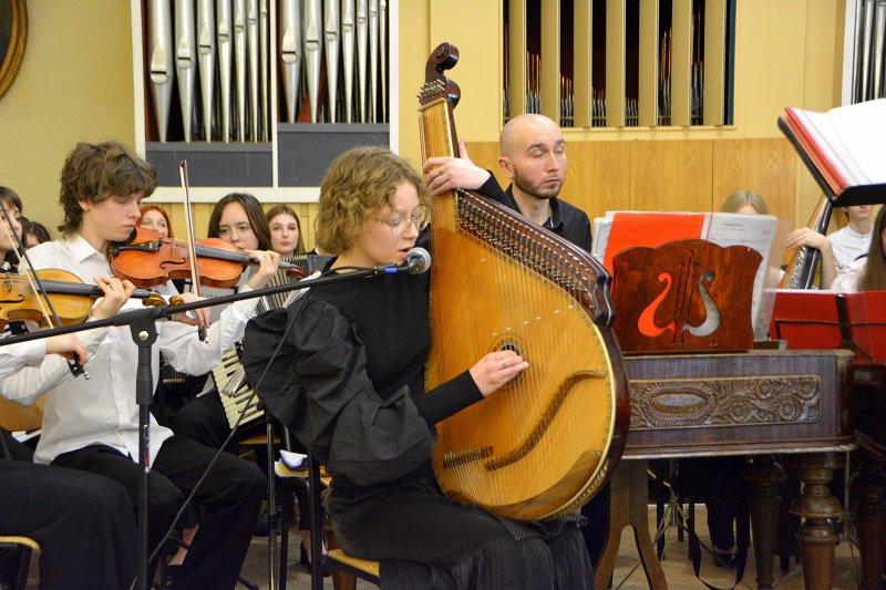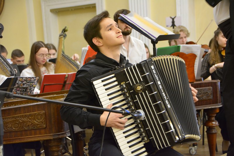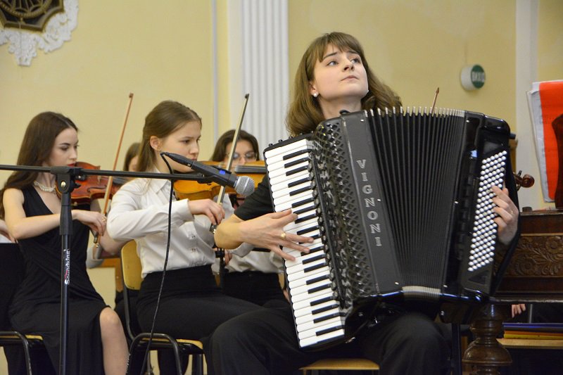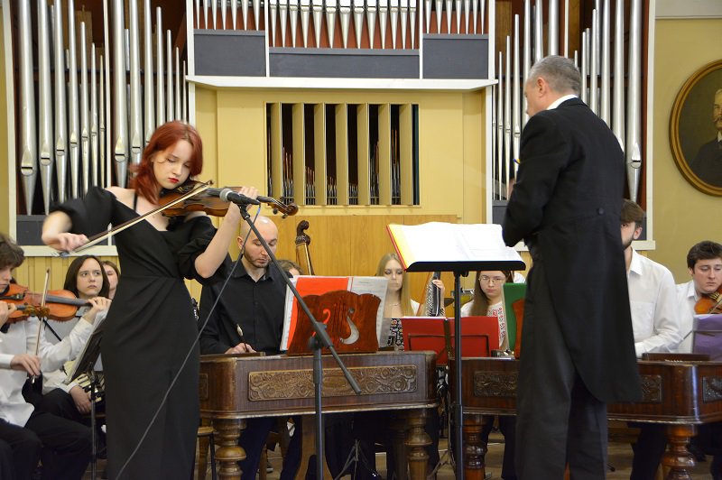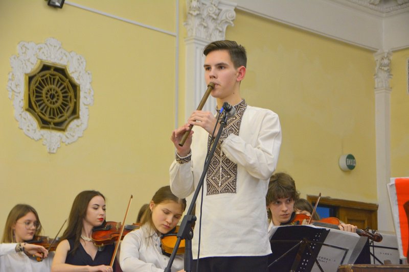А студенти подарували глядачам ціле мистецьке суцвіття: це і випускниця Академії Крістіна Чепнян з мелодією Валерія Севастьянова «Ранковий дощ»; і студентка 3 курсу Софія Лук’яненко з шедевральною лемківською народною піснею «Ой, верше мій верше» ( викладачка – Заслужена артистка України Людмила Олексіївна Придіус»); і джазова композиція Джорджа Гемільтона «Блюз у дерев’яному будиночку» в інтерпретації студентки другого курсу Анастасії Радзінської (клас викладача Сергія Дмитровича Кіпні); і «Драйв» Віктора Власова у виконанні студента третього курсу Тимофія Шваба (клас викладача-методиста Сергія Григоровича Омельченка); і жартівлива українська народна пісня «глибока кирниця» у виконанні Марії Пренделас та Анастасії Павліченко ( аранжування Сергія Омельченка); і концертна п’єса Володимира Матвійчука «Ватра» для сопілки з оркестром, яку виконав студент-першокурсник Мирослав Роп ( клас викладача Івана Миколайовича Данчили); і варіації на тему румунської народної пісні «Прийди, милий,прийди увечорі» для дуету цимбал у виконанні викладача Академії Івана Миколайовича Данчила та випускника Влада Боднарука…