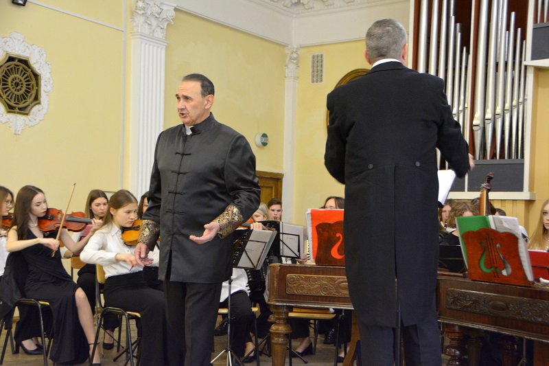 -Дякуємо воїнам ЗСУ за можливість провести сьогоднішній концерт, - звернувся до присутніх ректор Академії, професор Василь Романчишин. – Побажаємо їм витримки та сили для якомога швидшого закінчення війни. Дякуємо також керівництву Національної музичної академії та ректору Максиму Тимошенку – моєму колезі - за те, що надав нам для події чудову залу… Це вже десятий за ліком концерт «Гармонія поколінь» – ювілейний. Кожен рік, окрім 2022-го – миу такий спосіб звітуємо перед братами, батьками, сестрами, першими своїми педагогами… Думаю, нині можемо говорити про виховане ціле покоління молодих музикантів. І не одне. Я захоплений, як і всі ми. Я щасливий, що маю честь очолювати навчальний заклад, де навчаються такі талановиті студенти... Ви не просто граєте і співаєте. Ви - утверджуєте український дух. У самому центрі нашої України. Тож хай Господь Бог допомагає Вам у цьому. І вашим батькам, і вашим дідусям та бабусям допомагає, щоб вони побачили вас щасливими у нашій щасливій, красивій, вільній Україні, яка буде нездоланною упродовж віків, буде яскравою, барвистою квіткою на мапі світу , де відвоювала своє місце кров’ю і величезним трудом.