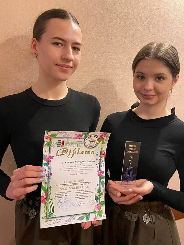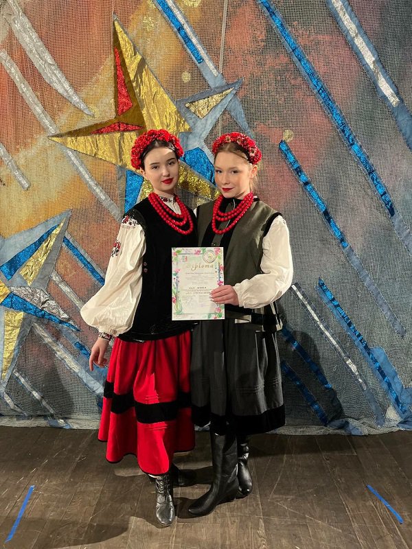 1. У номінації «Народний вокал» перемогли : солістки народного ансамблю «Роксолана», дует «Гарні» - АННА ГУЗЕНКО І АННА ЛЯХОВЕЦЬКА (4 вікова категорія). Викладачка - Заслужена артистка України ЛЮДМИЛА ПРИДІУС.