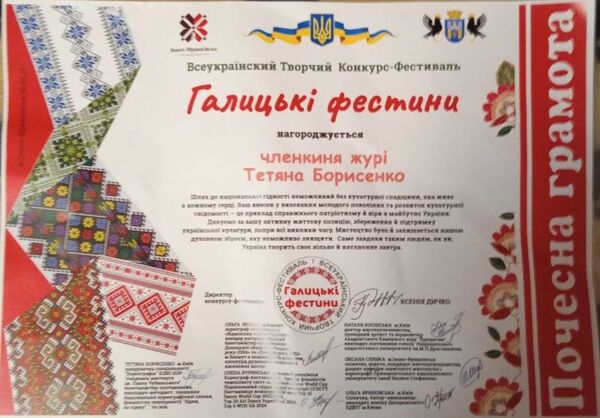 26 квітня 2025 року у м.Івано-Франківськ відбувся Всеукраїнський творчий конкурс-фестиваль"Галицькі фестини", що зібрав учасників з різних куточків України в номінаціях - хореографія, вокал, театральний жанр, інструментальне мистецтво В роботі журі брала участь голова предметної -циклової комісії "Народна хореографія" викладач -методист, художній керівник та балетмейстер -постановник хореографічного
