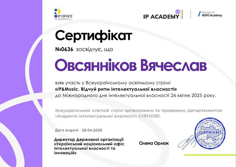 Подивитись у записі Всеукраїнський освітній стрім «IP&Music. Відчуй ритм інтелектуальної власності» можна за посиланням: