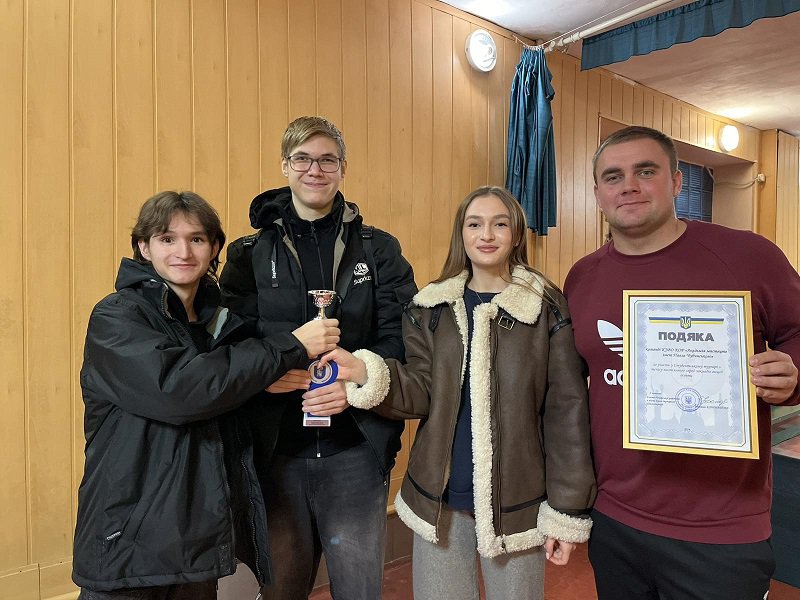 Павла Чубинського: Ангеліна Кравченко, Тимур Єгоров та Тимофій Шваб. Наша команда достойно виступили на змаганнях, отримала кубок і подяку Печерської районної у місті Києві державної адміністрації. Молодці! Так тримати!
